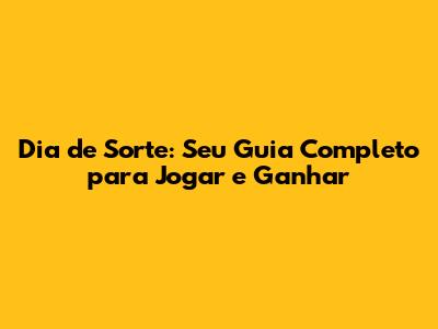 Dia De Sorte: Seu Guia Completo Para Jogar E Ganhar