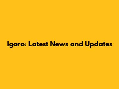 Igoro: Latest News And Updates