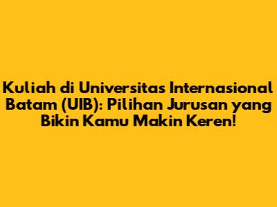 Universitas Internasional Batam (UIB) adalah pilihan yang tepat buat kamu yang pengen kuliah di Batam dengan kualitas internasional. Dengan berbagai pilihan jurusan, fasilitas lengkap, dan lingkungan kampus yang multikultural, UIB akan membantumu meraih masa depan yang gemilang. Jadi, tunggu apa lagi? Segera daftar dan jadilah bagian dari keluarga besar UIB! Jangan lupa, pilih jurusan yang sesuai dengan minat dan bakatmu, ya!