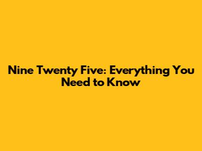 Nine Twenty Five: Everything You Need To Know