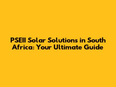 PSEII Solar Solutions In South Africa: Your Guide