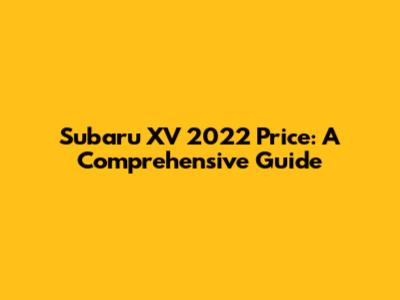 Understanding the Subaru XV 2022 Price Structure